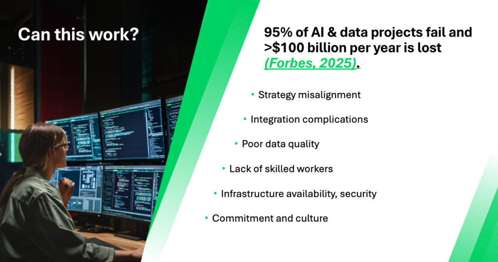 - Unprepared Processes and Data: AI is not a magic pill for data chaos. If internal processes are missing, advanced automation cannot function.
